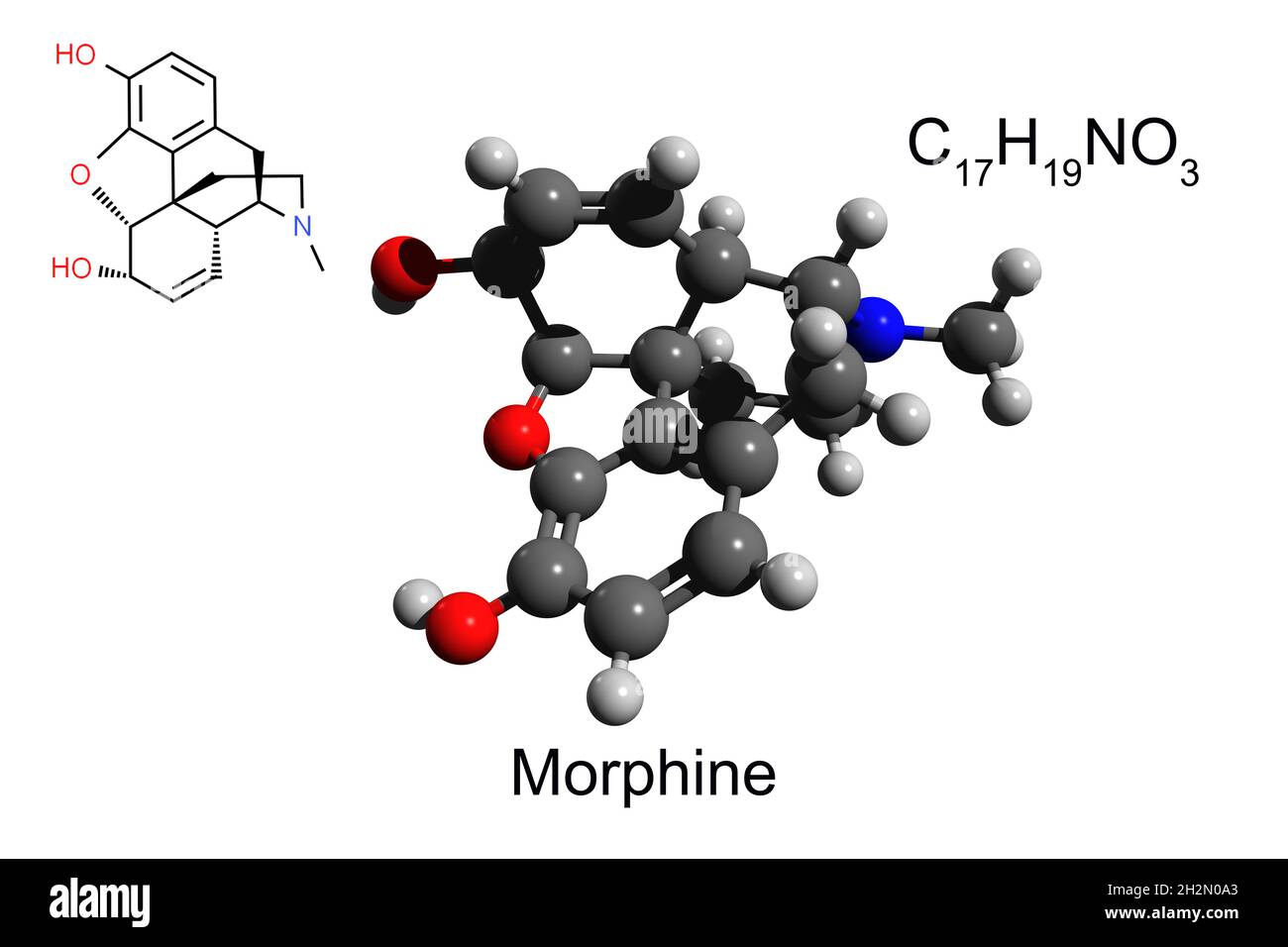 Chemical Formula Skeletal Formula And 3d Ball And Stick Model Of Opioid Morphine White Background Stock Photo Alamy
